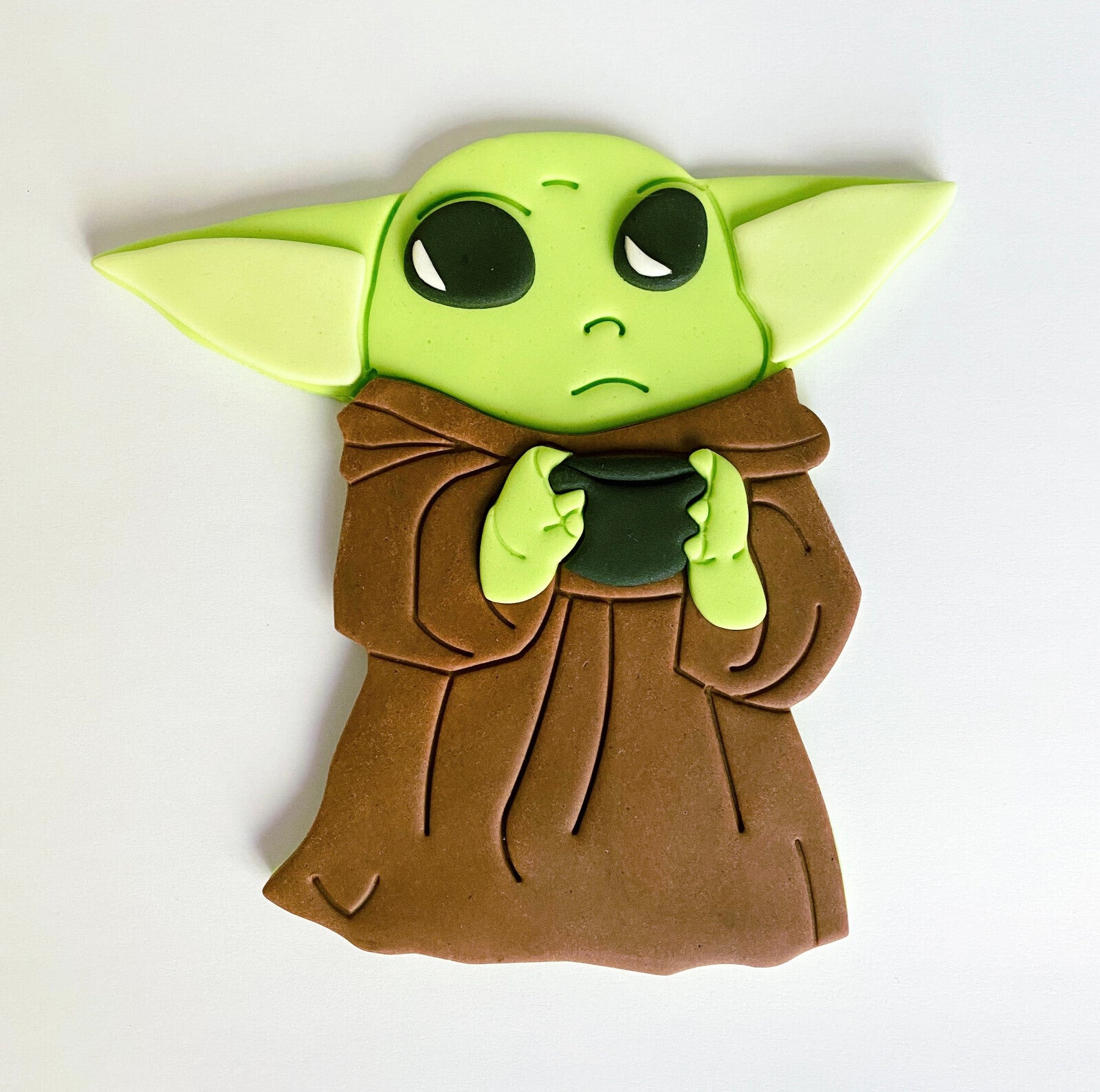 Elevate your celebration with our Yoda Cake Topper, crafted from edible fondant. Perfect for birthdays and themed events, adding a whimsical touch to any cake. The item is large and measures 5.5 inches.