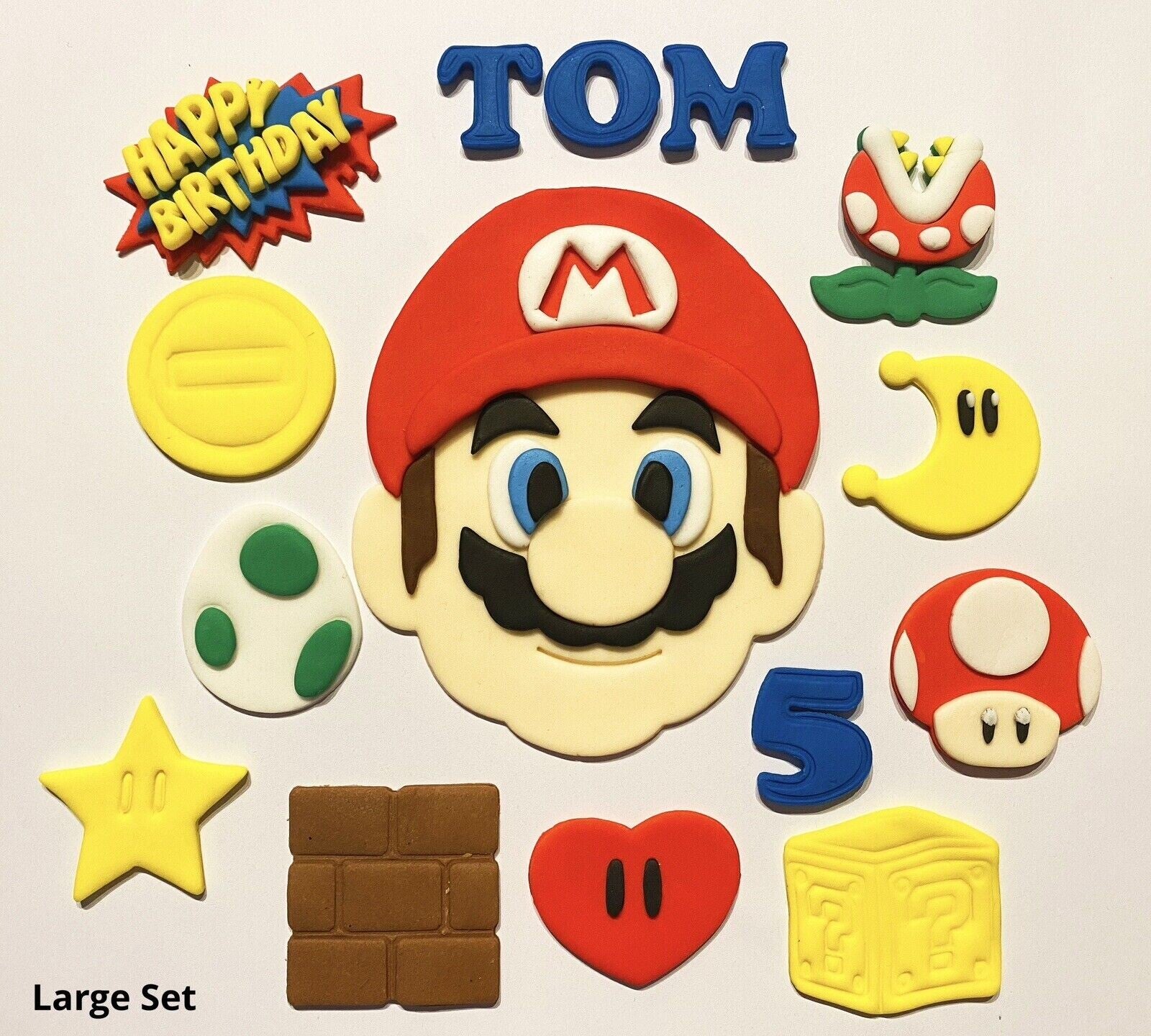 Elevate your celebration with our Super Mario Cake Topper, crafted from edible fondant. Perfect for birthdays and themed events, adding a whimsical touch to any cake. The item is large and measures 5.5 inches.