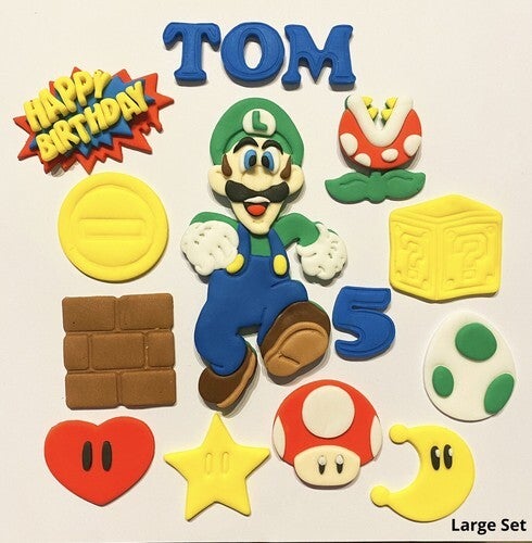 Elevate your celebration with our Luigi Cake Topper, crafted from edible fondant. Perfect for birthdays and themed events, adding a whimsical touch to any cake. The item is large and measures 5.5 inches.