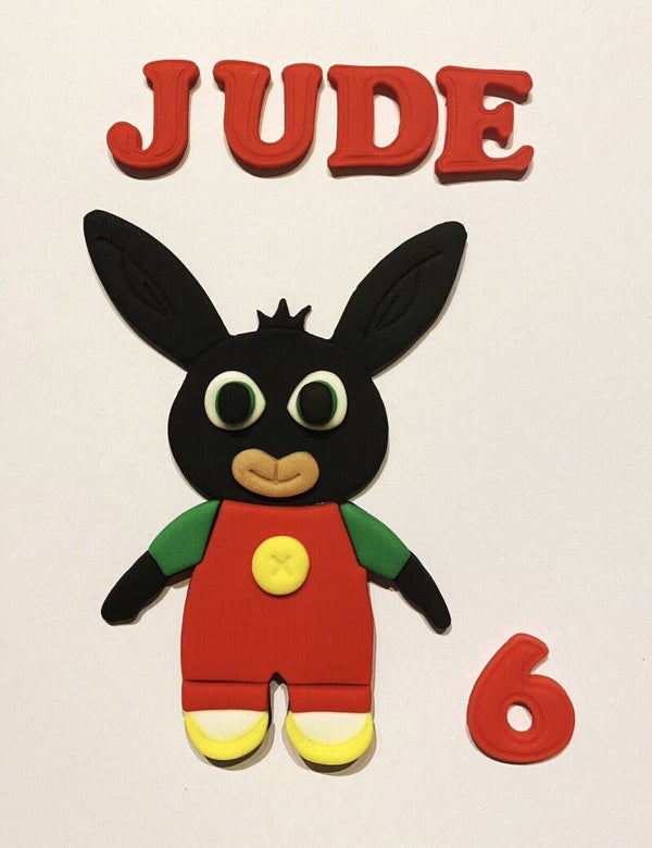Elevate your celebration with our Bing Cake Topper, crafted from edible fondant. Perfect for birthdays and themed events, adding a whimsical touch to any cake. The item is large and measures 5.5 inches.