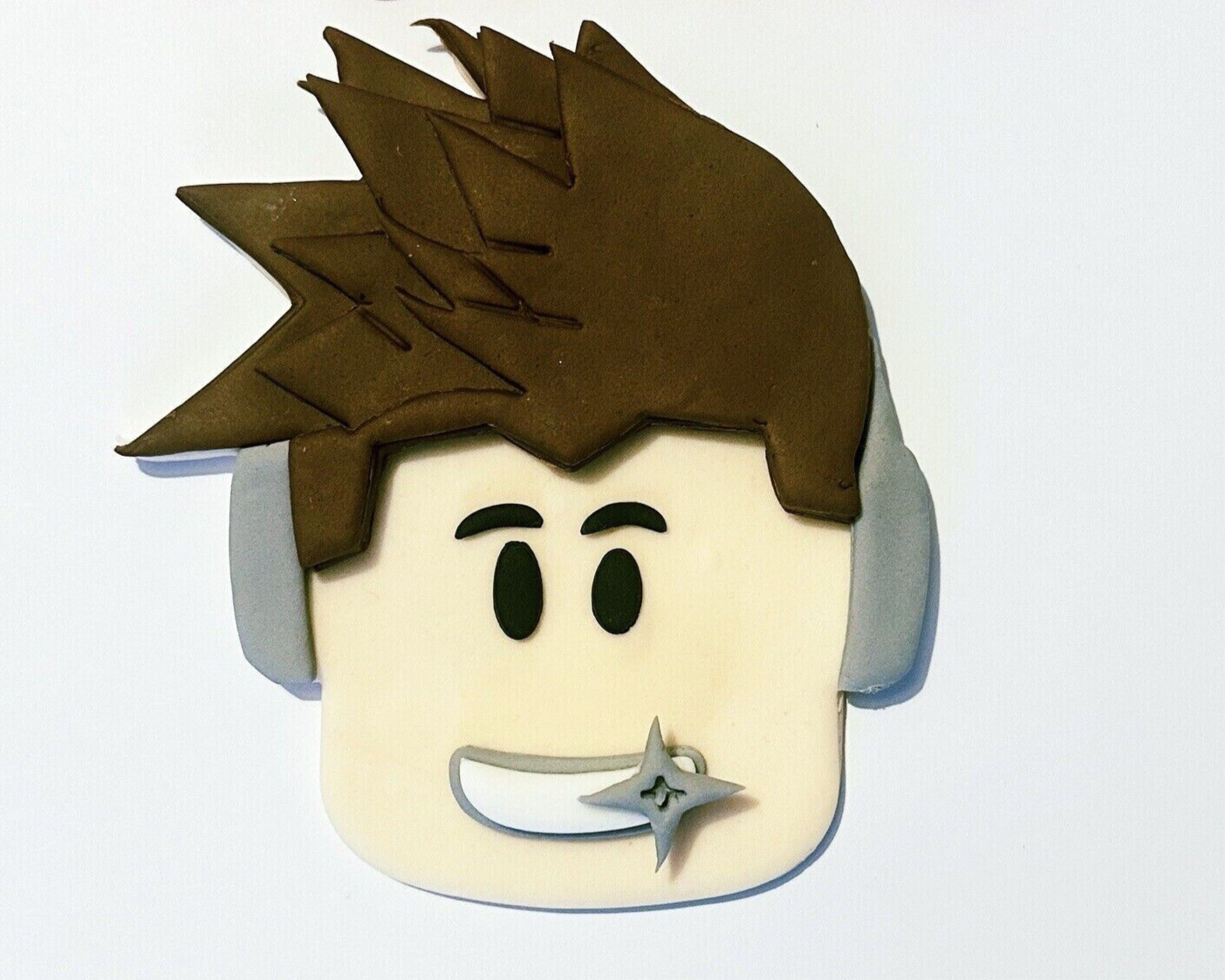 Elevate your celebration with our Roblox Cake Topper, crafted from edible fondant. Perfect for birthdays and themed events, adding a whimsical touch to any cake. The item is large and measures 5.5 inches.