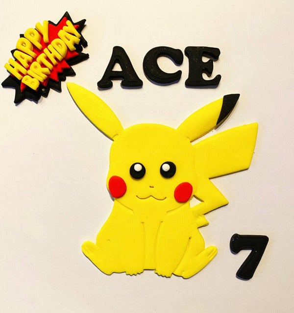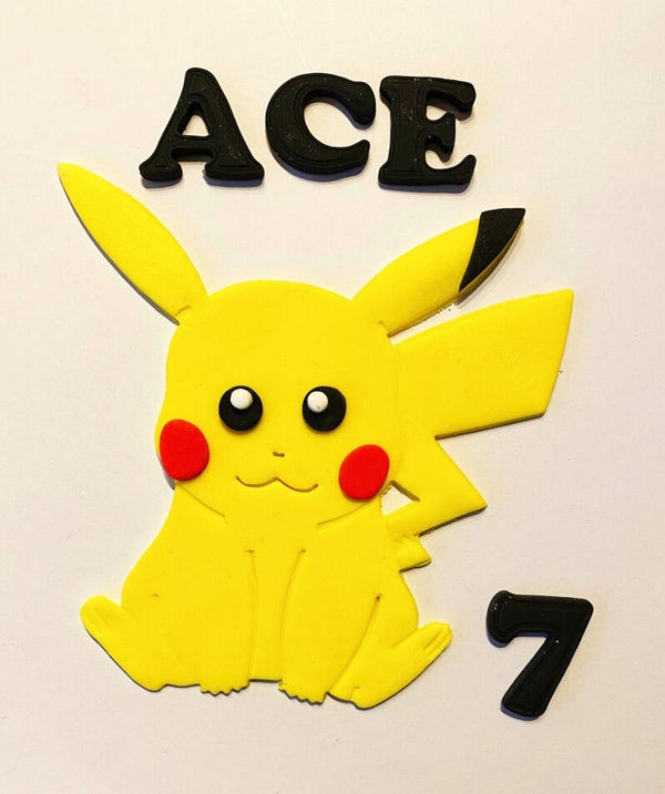 Elevate your celebration with our Pikachu Cake Topper, crafted from edible fondant. Perfect for birthdays and themed events, adding a whimsical touch to any cake. The item is large and measures 5.5 inches.