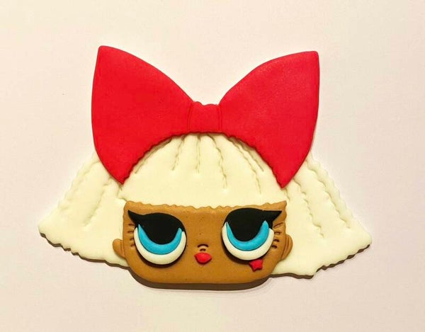 Elevate your celebration with our Doll Cake Topper, crafted from edible fondant. Perfect for birthdays and themed events, adding a whimsical touch to any cake. The item is large and measures 5.5 inches.
